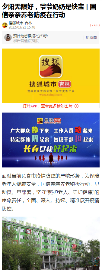 【搜狐城市-吉林】夕陽無限好,爺爺奶奶是塊寶 | 國信親親養(yǎng)老防疫在行動